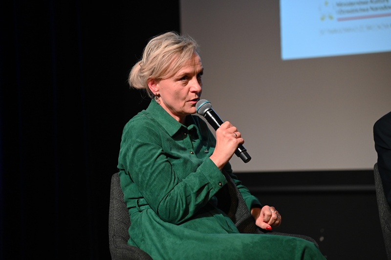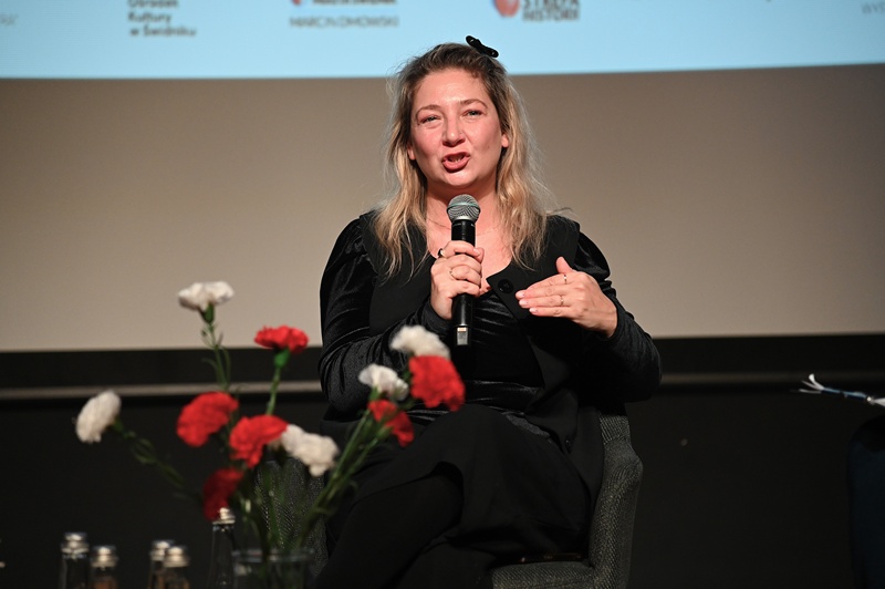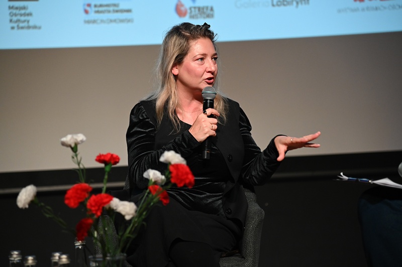 – W filmie „Wałęsa”, reżyserowanym przez wielkiego Andrzeja Wajdę, dochodzi do ogromnego przeinaczenia. Otóż w kadrze obrazującym tę sytuację, jej bohaterem jest mężczyzna. Myślę, że sztuka współczesna ma ogromną rolę w edukacji historycznej. Na całe szczęście jest ona często elementem sztuki. Przykładem jest praca znanej artystki Zuzanny Janin, która z kadru filmu Wajdy wycina mężczyzną i wkleja Osowską, Pieńkowską i Walentynowicz. To przyczynek do refleksji historycznej, a dzięki niej odkłamywania historii. Rolą artystów jest jednak nie tylko przywracanie pamięci o „wygumkowanych” kobietach, ale również mówić o współczesnych problemach, a tych mamy wiele – tłumaczyła Marta Czyż.