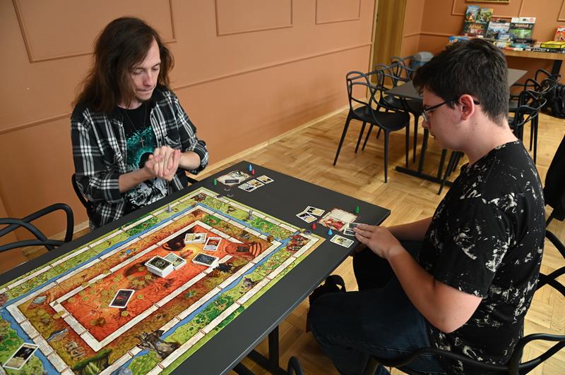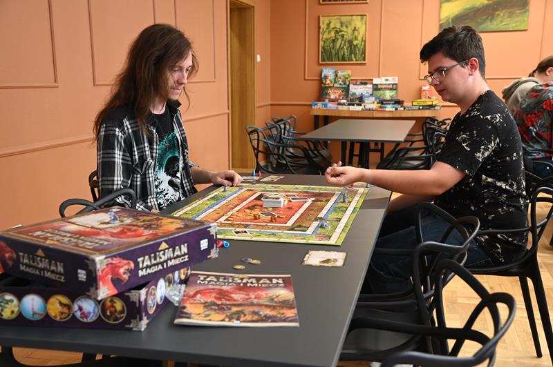 – Mamy na przykład „Talismana”, „Monopoly”. Bardzo dobrą reputacją cieszy się ostatnio gra „Tajniacy”, nasz najnowszy nabytek. Jest to, moim zdaniem, drużynowa gra w skojarzenia, co budzi dużo emocji u graczy i bardzo ich przyciąga. Dysponujemy też, na przykład grą „Dixit”, grami imprezowymi, zestawami do gier karcianych. Zachęcamy także do zapoznania się z kolekcjonerskimi grami karcianymi, które u nas od wielu miesięcy przodują i ściągają nawet graczy z sąsiednich miast. Zapraszamy osoby w każdym wieku. Gościliśmy zarówno rodziców z dziećmi, jak i samych dorosłych. Każdy jest mile widziany – zachęca Michał.